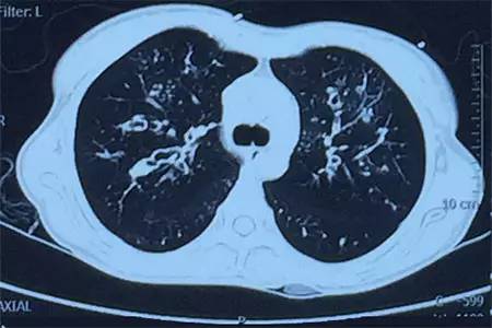 患者女性,21歲,間斷咳嗽、咳痰3年,加重伴發(fā)熱10日。