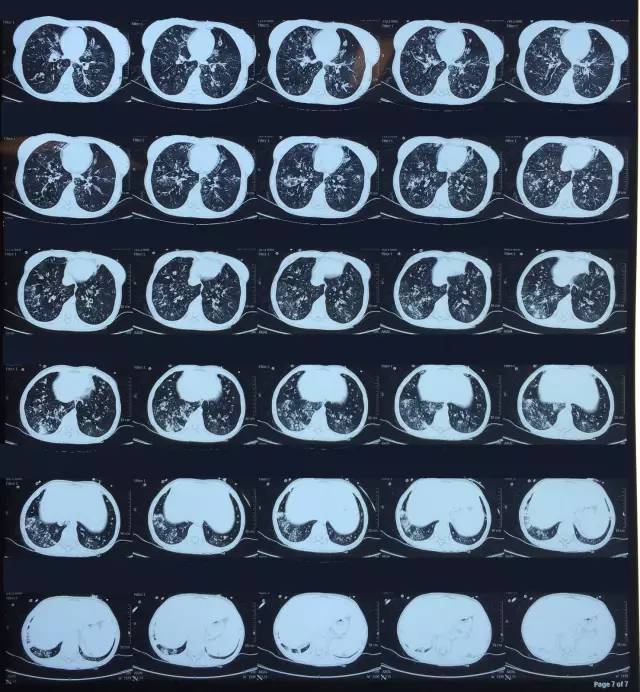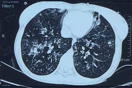 該患者肺部影像學(xué)表現(xiàn)為明顯的支氣管擴(kuò)張,同時(shí)伴有彌漫的滲出斑片影,考慮合并感染,細(xì)菌學(xué)培養(yǎng)提示為綠膿桿菌,結(jié)合藥敏結(jié)果給予頭孢他啶+阿米卡星抗感染,患者存在II型呼吸衰竭予氣管插管機(jī)械通氣支持,加強(qiáng)體位引流排痰,治療18天,患者情況好轉(zhuǎn)出院。