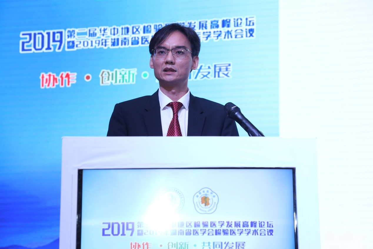 湖南省醫(yī)學(xué)會檢驗專業(yè)委員會主任委員,中南大學(xué)湘雅三醫(yī)院檢驗科主任,伍勇教授代表湖南省醫(yī)學(xué)會檢驗專業(yè)委員會致辭并熱忱歡迎各位與會同仁來到文化名城長沙學(xué)習(xí)。