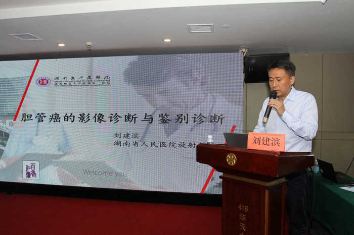 湖南省人民醫(yī)院放射科主任、湖南省醫(yī)學(xué)會放射學(xué)專業(yè)委員會副主任委員兼腹部學(xué)組組長劉建濱教授致辭并做專題學(xué)術(shù)報(bào)告