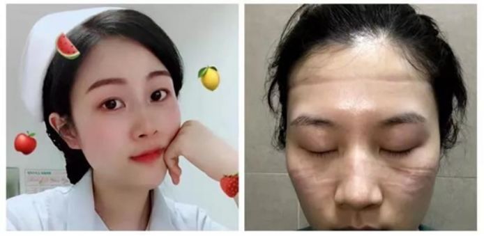 劉晶臉上被防護(hù)面罩壓出深深的印子。