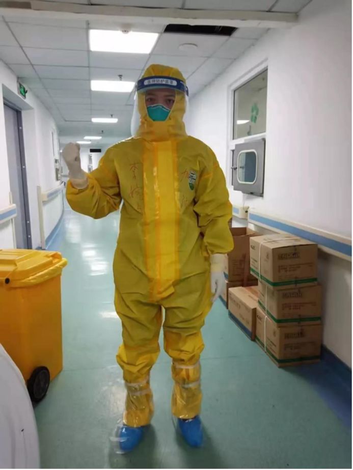 身著防護(hù)服的李婉貞。