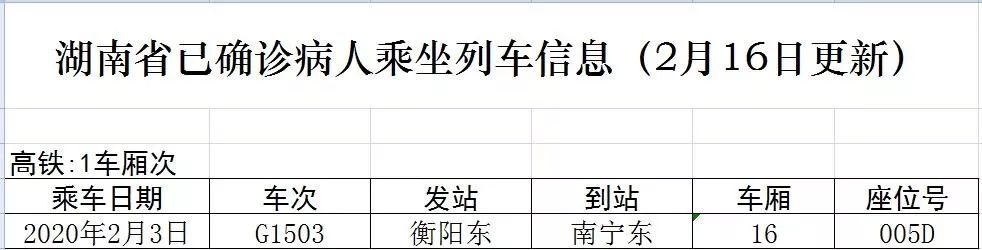 附件:湖南省已確診病人乘坐列車及信息(2月16日更新)